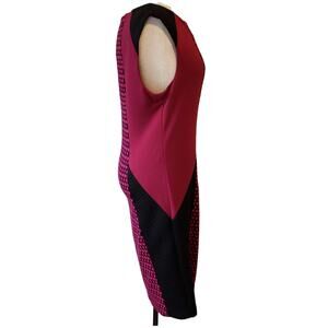 Eci New York Dress Womens 10 Midi Burgundy Black Sleeveless Colorblock Workwear
