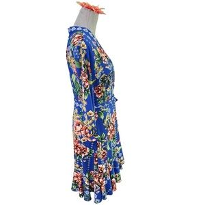 Eci New York Dress Womens Blue Midi Floral Wrap Floral Ladies size L