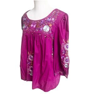 Eci New York Embroidered Bohemian Peasant Blouse Purple Size XL Embellished