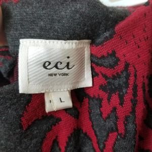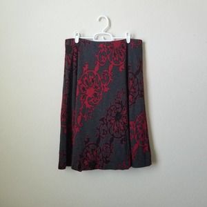 Eci New York Red Scroll Print Sweater Knit Skirt L