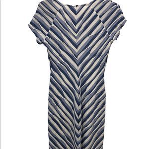 Eci New York Textured Fancy Weave Knit Blue and White Striped Dress