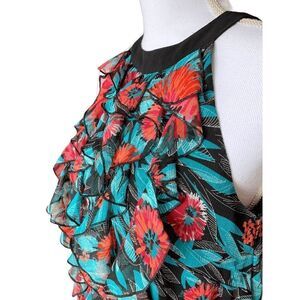 Eci New York Women's Top Size 2 Multicolor Ruffle Front Halter Multicolor