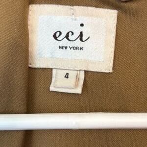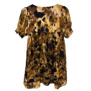 Eci Puff Sleeve Mini Dress Scoop Neck 3D Flower Embellished Brown Black Size 4