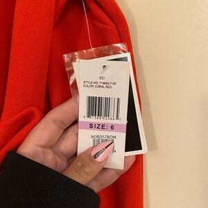 Eci Ruffle Bell Sleeve Shift Dress in coral red size 6. NWT