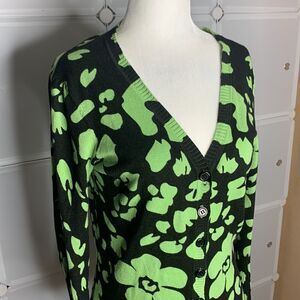VGUC. Eci Black & Green Floral Cardigan Size Small D&B 558