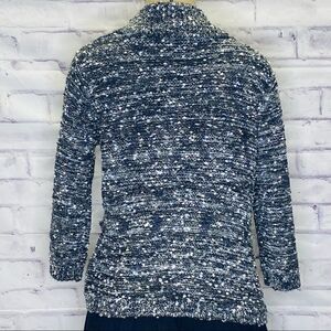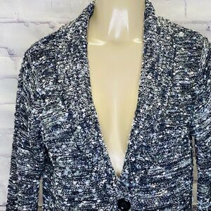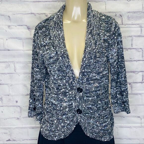 Eci Metallic Thread Collar 2-Button Cardigan Shawl 3/4 sleeve Heathered black, grey and white Women's Size M