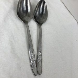 Ecko Eterna Carolyn Stainless Textured Roses Stainless Lot 2 Serving Spoon 8 1/2.