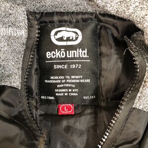 Ecko Unitd Jacket Mens Large Black Gray Hooded Full Zip Logo Graphic Pocket