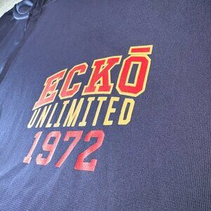 Ecko Unlimited 1972 Full Zip Mock Neck Blue Graphic Print Logo Sweater Men's 3XB
