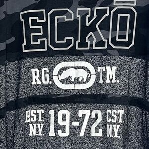 Enhance your wardrobe with this stylish Ecko Unltd camo short sleeve crew neck with graphic details on front and back.