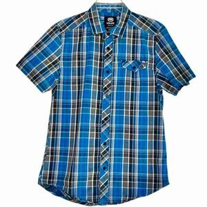 Ecko Unlimited Plaid Short Sleeve Shirt in Blue/Black/White Men’s M
