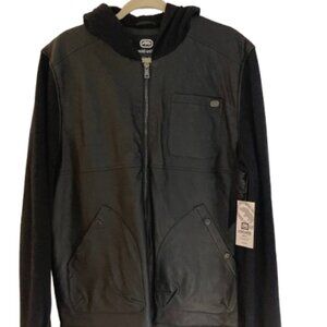Ecko Unlimited women's black coat - new with tags! Faux leather coat with cotton sleeves and hood, zip up with quilted interior. Check photos for details.