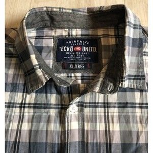 Ecko Unltd. Authentic Classic Button Up Shirt Short Sleeve Gray/Black XL XLARGE