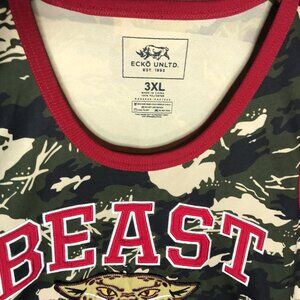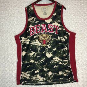 Keywords: Ecko Unltd, Beast, Camo, Basketball Jersey, Tank Top, 3XL, Mens, Streetwear, Athletic Wear, Graphic Tank, Tiger Graphic, Red Trim, Polyester, Casual Wear