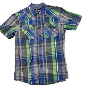 Ecko Unltd. Button Up Shirt Men's Size M Short Sleeve Blue Green Classic