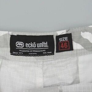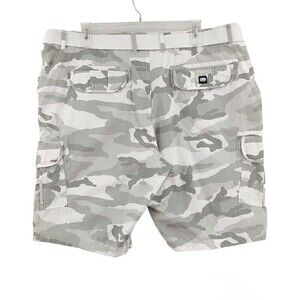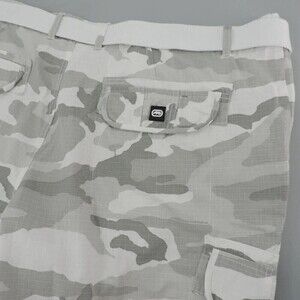 Ecko Unltd Cargo Shorts Mens 46 White-Gray Camouflage Belted Utility Cotton