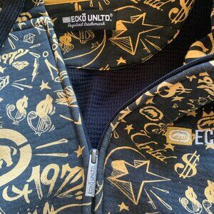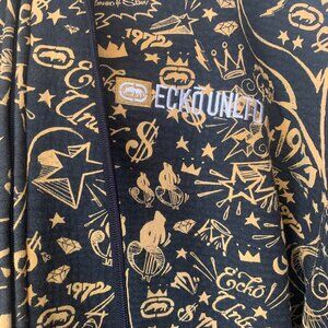 Ecko Unltd. Full Zip XL Hoodie VTG Y2K All-Over Print Graffiti Rhino Logo Urban