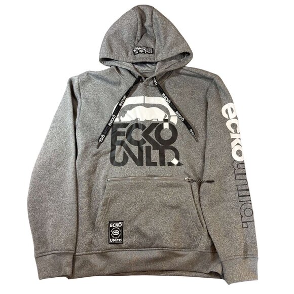 Ecko Unltd. Gray Pullover Hoodie W/ Kangaroo Zipper Pocket & Graphic Logo Size M