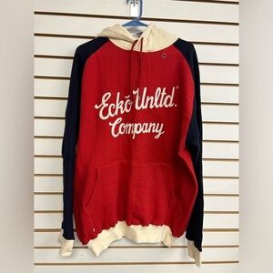 Ecko Unltd. Hoodie Pullover Red/Blue/Cream Embroidered NWT Hand Warmer Pocket