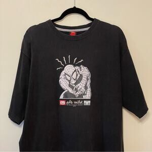 Details: short sleeve t-shirt casual Marvel Spider-Man cartoon Ecko Unlimited Vintage y2K streetwear urban embroidered patch The Black Rhino Exhibit copyright 1972 The Classic Tee