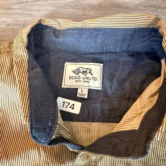Ecko Unltd Men’s Short Sleeve Button-Up Shirt – Size L – Tan/Striped