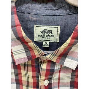 Ecko Unltd. Shirt Adult Extra Large Red Plaid Button Up Short Sleeve Casual Mens
