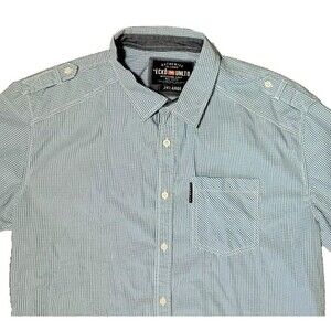 Ecko Unltd Shirt Men's 2X-Large 2XL Blue White Plaid Short Sleeve Button Up