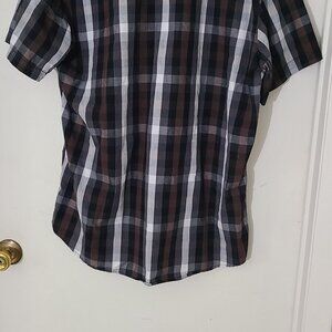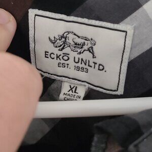 Ecko Unltd Shirt Mens XL Black White Plaid Button Up Short Sleeve Casual