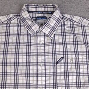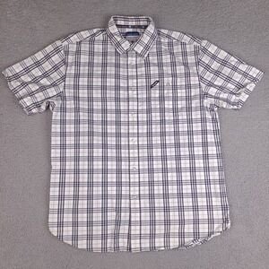 Ecko Unltd Shirt Mens XL White Plaid Button Down Classic Material Short Sleeve