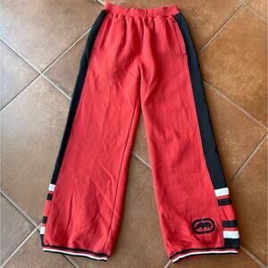 Ecko Unltd. Vintage Mens Red White and Black Wide Leg Sweatpants w Logo size S