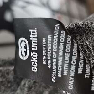 Stylish Ecko Unltd t-shirt with a bold graphic design. Features a mix of white and gray colors.