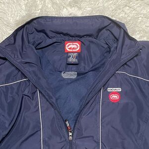 Ecko Unltd Windbreaker Size Medium Dark Blue Stored Hood Vintage
