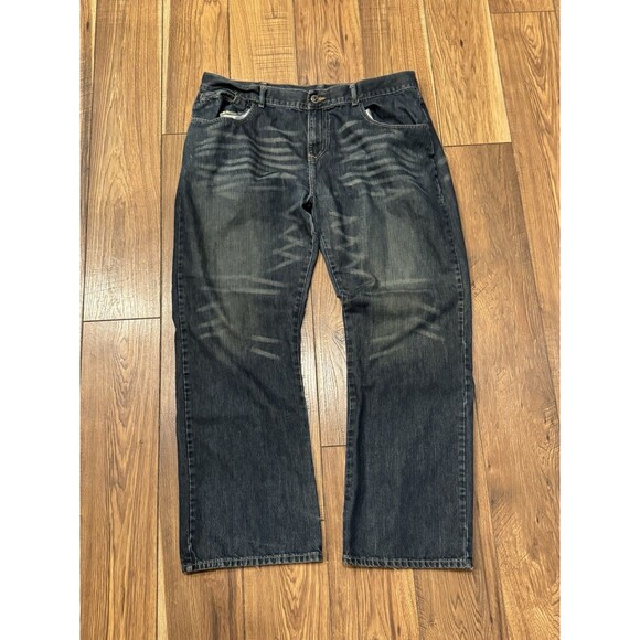 Ecko Unltd Y2K Faded Dark Wash Jeans Baggy 42x32 Faded Grunge Skater Whiskered