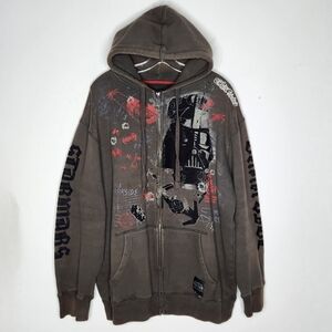 Ecko Unltd x Star Wars Hoodie Mens XL The Dark Side Vader Gray Embroidered 2008