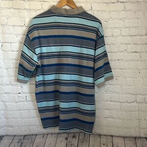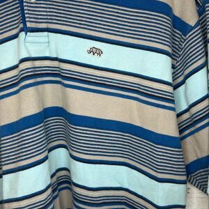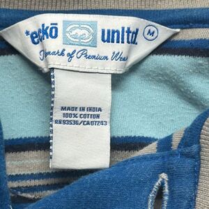 Ecko Unltd. Shirt Mens M Polo Blue White Striped Short Sleeve Logo RN# 93536