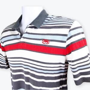 Ecko Untld Gray White Red Striped Mens Polo L. Short sleeve, Good used condition. No stains, tears or piling, some wash wear, but minor.