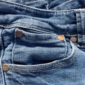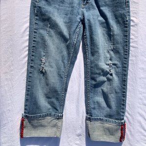 Eckored Denim Riveted Capri Large Cuff Red Seem Jeans Distressed