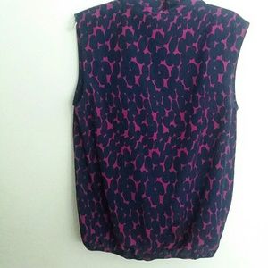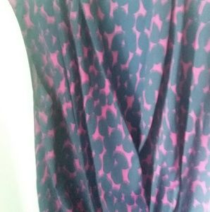 It's a top that opens in the front so you have to wear a cami/under shirt under it. It stretches on the bottom 100% polyester dry clean only.