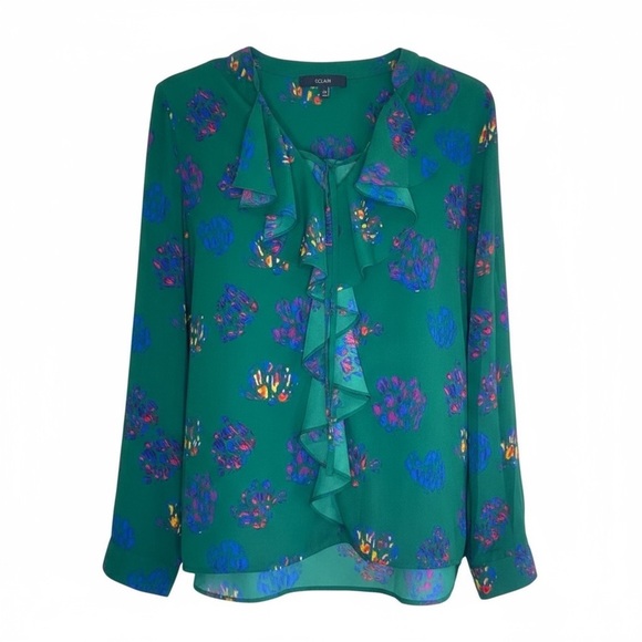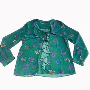 Eclair Green Abstract Print Ruffle Front Blouse | Size L