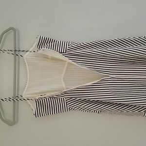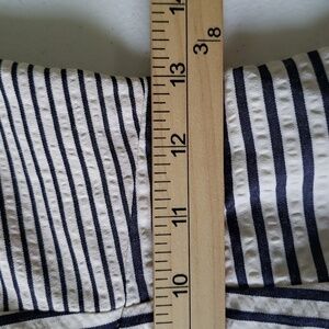 Eclair Mini Sundress XS Navy Blue Cream Ivory Striped Seersucker Pockets Straps