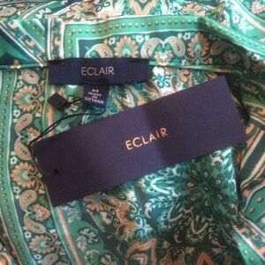 Eclair NWT Green Satin Paisley Front Tie Crop Western Silky Cowgirl Top Size Med