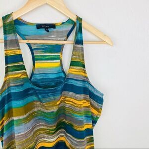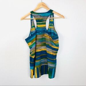 Eclair teal and yellow abstract print racerback tank top size medium. Excellent condition see photos for measurements and fabric content