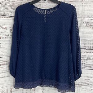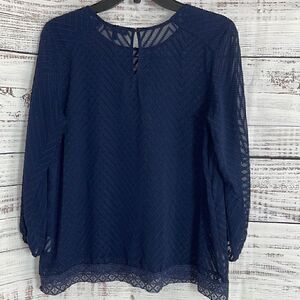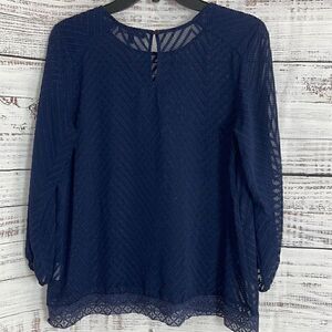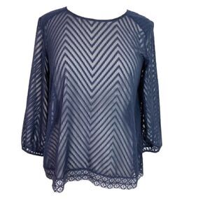 Eclair Top Womens size Small chiffon sheer lace embroidered light Navy Blue