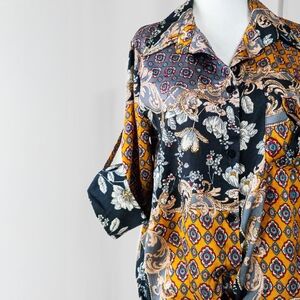 Eclectic Long Sleeve Button Up with waist tie