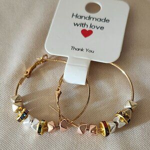 Eclectic Mixed-Metal & Colorful Beaded Gold Hoop Earrings