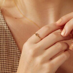 Sizes 5-9 Genuine Rainbow Moonstone/Labradorite/Onyx Recycled Sterling Silver 14K Gold-Plated Made in Thailand Equal parts elegance, style and mystery make up the Eclipse Ring. This delicate gold band with a semi-precious stone centre has undeniable spirit and steals the ring stack show.