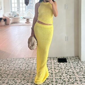 Step out in style with this elegant yellow maxi skirt. Perfect for any occasion, it offers a blend of comfort and fashion.