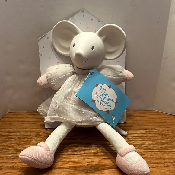 Adorable stuffed mouse from the Collection, featuring a charming white and pink design. Perfect for cuddling and imaginative play.