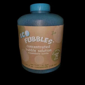 Eco Fubbles Concentrated bubble solution in expandable bottle.