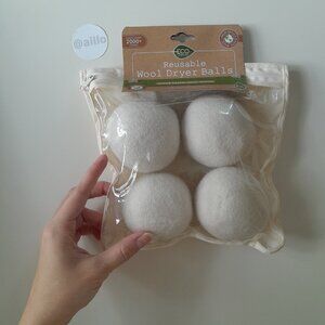 Reusable wool dryer balls reduces drying time, static, and gently softens clothes.